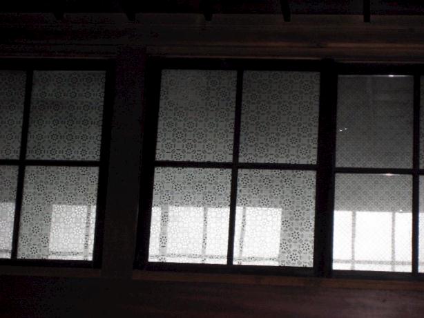 すりガラスの窓。当時のままで、割れてしまったら補修できないそうだ。