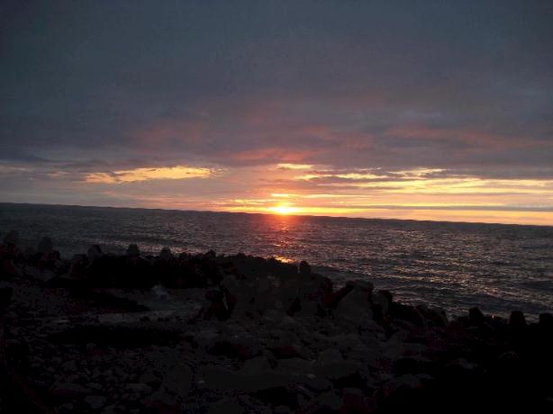 夕食が終わり、部屋に戻ろうとすると、民宿のおばさんが「くぼさん、夕日が沈むよ!」と。