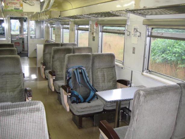 ボックス席の間にテーブルがあって、中学校時代の京都行き修学列車を思い出す。