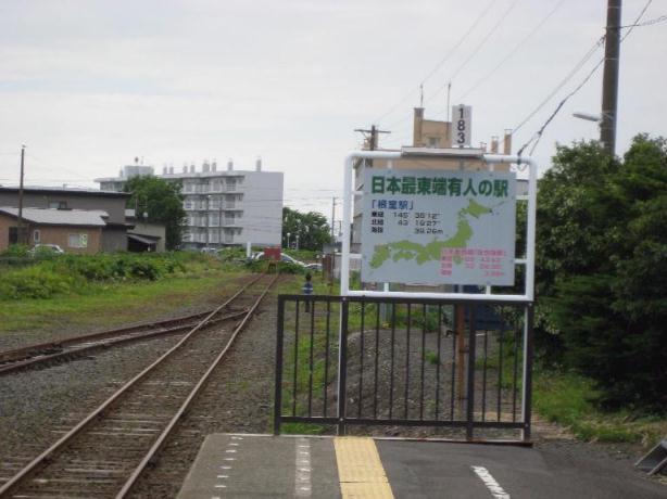 日本最東端有人の駅と書いてある。有人無人に限らなければ、最東端は東根室駅。