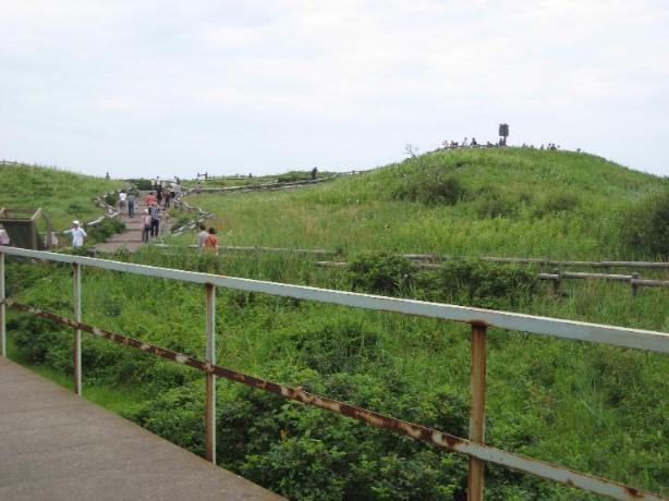 5月1日から10月31日までの期間、臨時停車する原生花園駅。多くの人が降りていった。