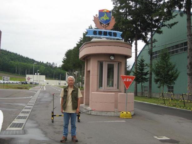 正門を警備していた女性の自衛官に写真を撮ってもらった。入隊して1年余りと言っていた。