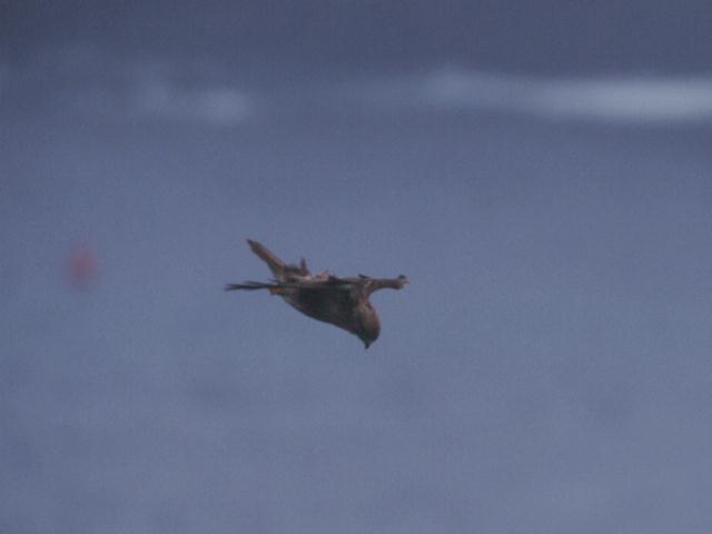 ファインダーを覗くと、海からの強風に向かってじっと静止するオガサワラノスリを確認。