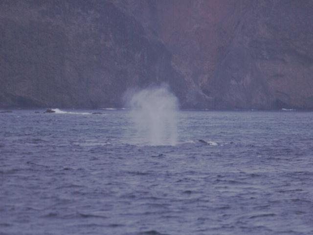 父島南部の千尋岩付近で、ザトウクジラのブロー(噴気)を発見。