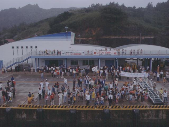 ドラが鳴って、いざ出港。島民の皆さんが見送りに来てくれた。船旅の良さを実感する。