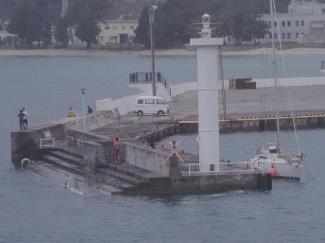 子ども達が、桟橋から飛び込んで見送るのが有名らしい。子ども達にも感謝。
