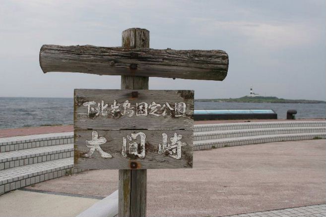 大間崎。函館市汐首岬まで17.5Km。夕方の曇天空なので、函館は見えなかった。