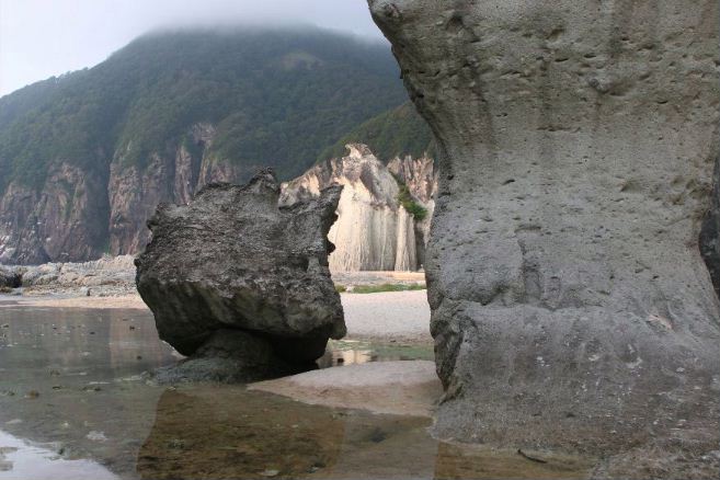 午後6時前に仏ヶ浦に到着。凝灰岩が約2Kmにわたって連なる。ISO 200、F4.5、1/60秒で撮影。