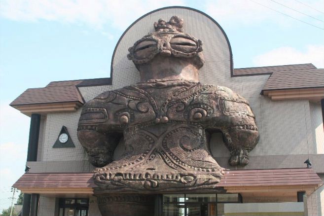 駅舎の遮光器土偶を撮影。このために、五所川原を通過してきた。